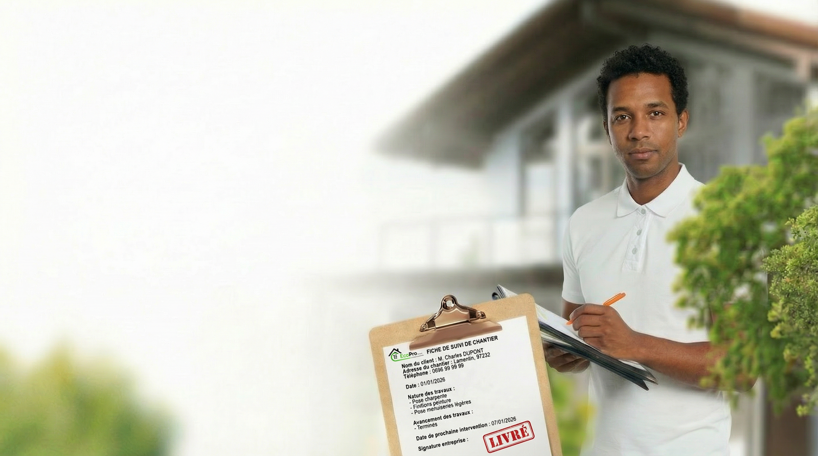 EcoPro Antilles s’appuie sur des professionnels qualifiés, coordonnés et impliqués à chaque étape du chantier. Présence régulière sur site, décisions rapides, échanges clairs : vous savez toujours où en est votre projet et qui en est responsable.